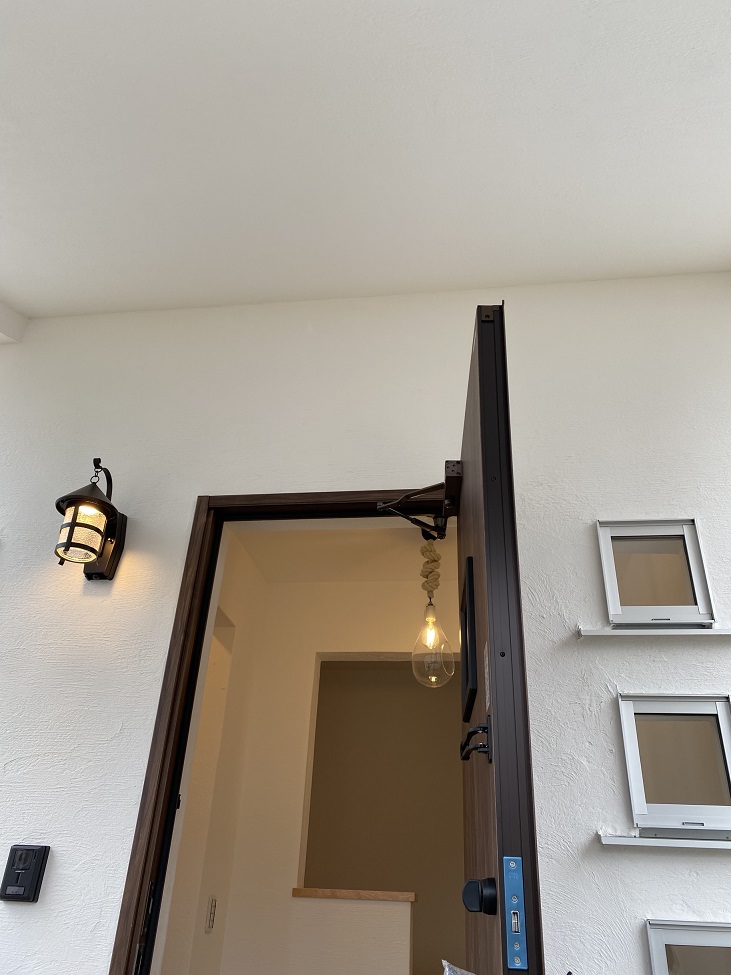 玄関の3連窓に みんなをお迎えするブラケット。