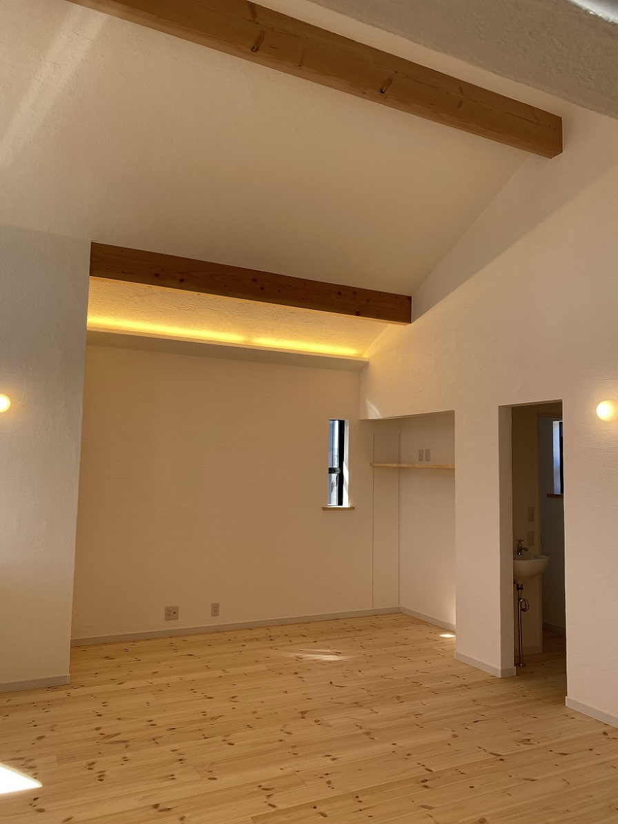 望んだとおりの大空間 天井の登り梁と