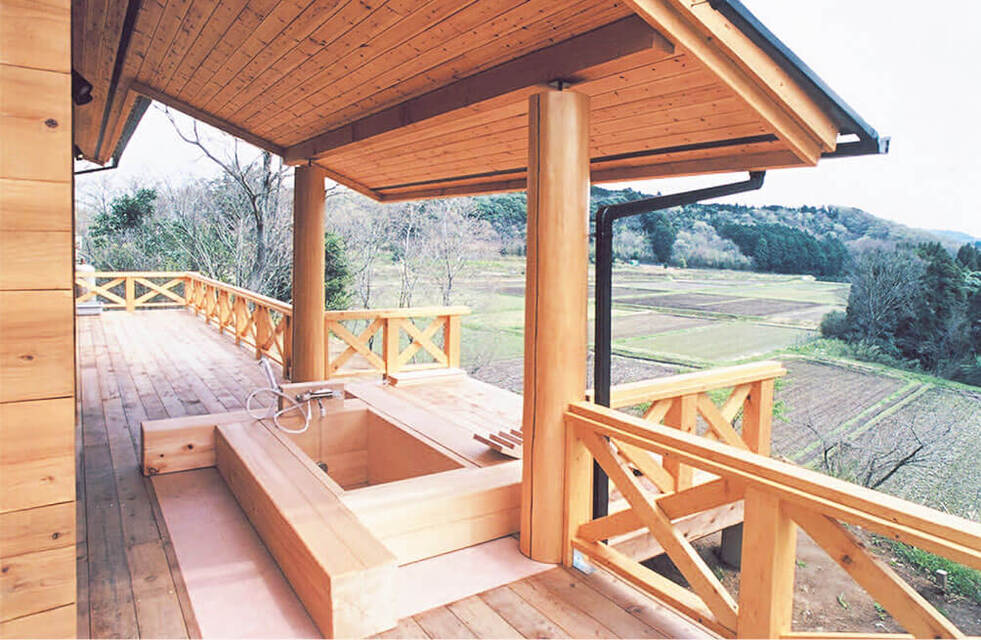 杉材の香りあふれる町屋風の30坪の平屋 君津市A様邸 ログハウス建築コンテストで奨励賞を受賞したA様邸。田園風景とローカルな久留里線の電車を眺めながら桧(ひのき)の露天風呂につかり、ゆったりと風景に溶け込む。これが日ごろ都心で活躍されているA様の疲れを癒す最良の方法です。屋根を低く、町屋風にとのご要望に応えました。階段を設けず、デッキスロープで玄関までゆるやかに傾斜した設計なので、安全に安心して歩くことができます。 Gallery 一覧へ 前へ 次へ