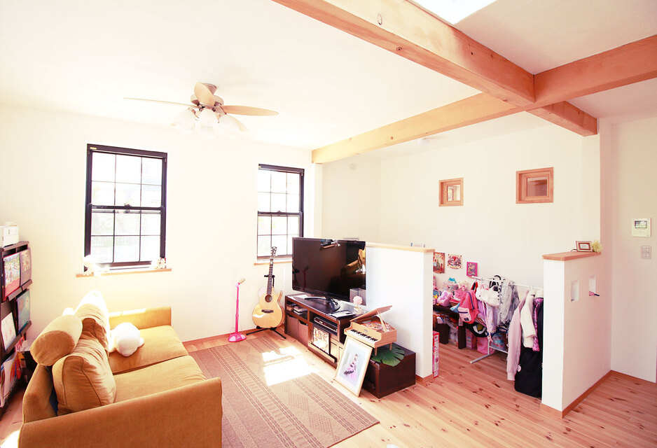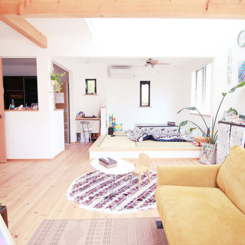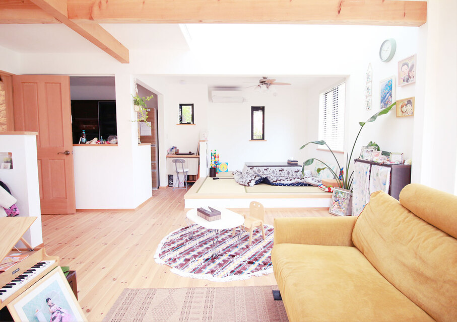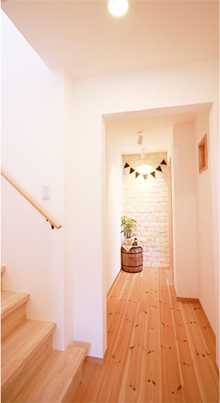 奥様お気に入りの可愛い玄関がある家 袖ヶ浦市I様邸 もくもく村にある家のような可愛らしさが特徴です。玄関~リビング~庭と行き来しやすい間取りになっています。特に可愛らしい玄関は奥様のお気に入り。子ども部屋はドアを設けず、リビングやキッチンからも目が届くのでママも安心です。 Gallery 一覧へ 前へ 次へ