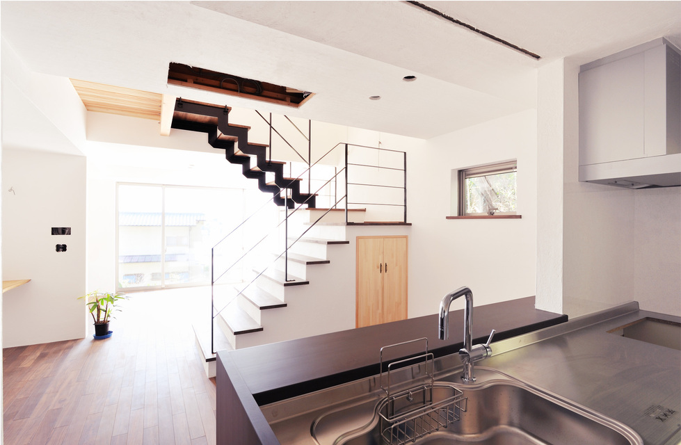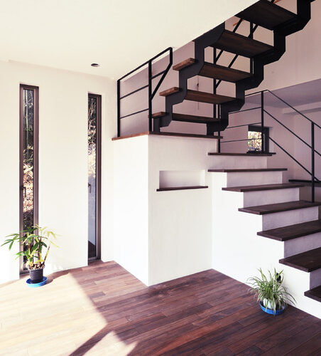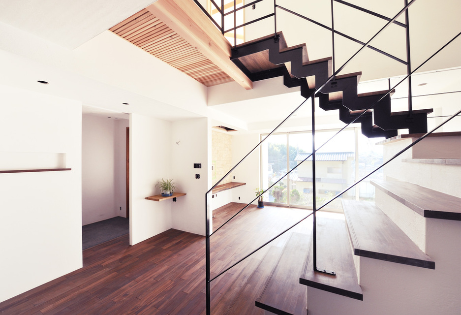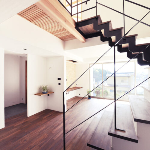階段の手摺りをアイアン素材で仕上げた無添加の家 袖ヶ浦市Y様邸 立地は高台で市内を見下ろす最高の土地を選ばれたK様。階段を上がりきった場所は、すのこ状になっていて風と光が通ります。床は本物のウォールナットを使用しました。 Gallery 一覧へ 前へ 次へ