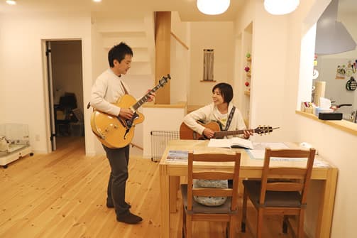 あわよくば「御柱」も入るといいなあと思っていましたが、どちらも叶えることができました!僕はギターをするのですが、漆喰は音がクリアで、響き方がとても良いです。(旦那様)