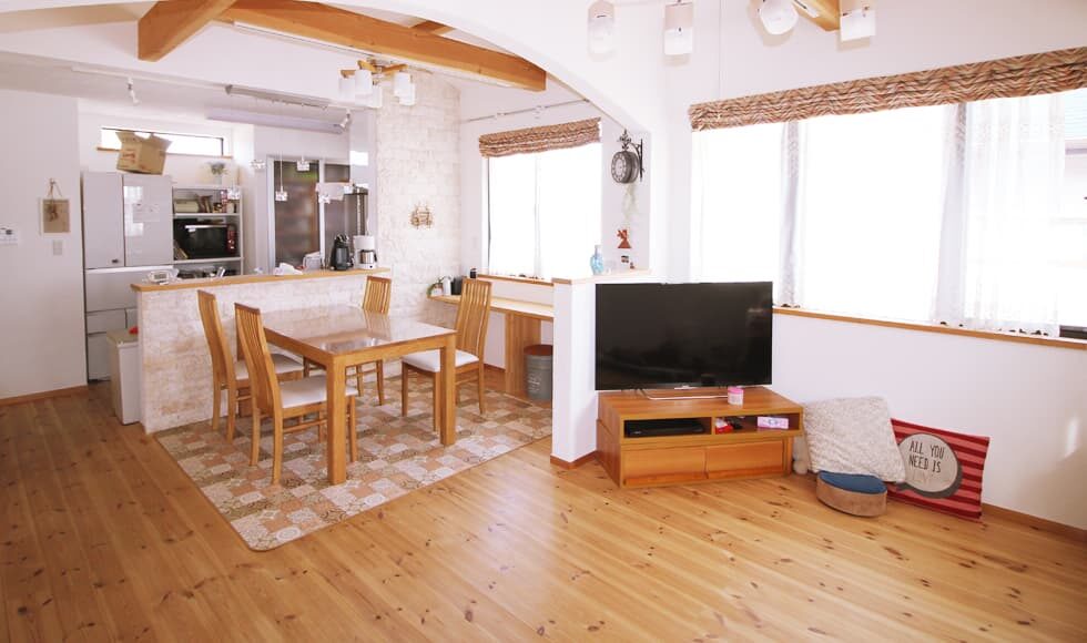 ある日、地元の住宅情報誌を見たときにきりんホームさんの展示場「もくもく村」を見つけて興味をひかれたので行ってみることにしました。第一印象は「高価そうだなぁ」と思っていましたがモデルハウスがお城のようにオシャレで、一緒に行った主人が乗り気になってくれたのと子供の喘息・アレルギーのことを考えて無添加住宅にすることを決めました。